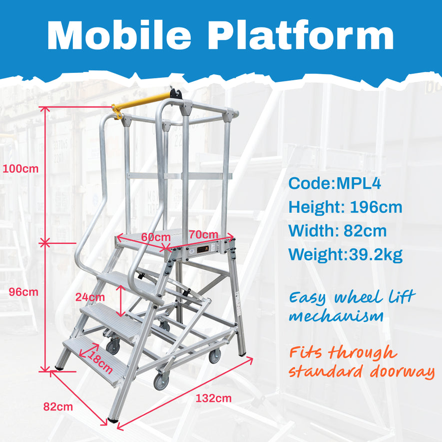 4-Step Aluminium Mobile Platform Ladder - Compact & Secure Access Solution